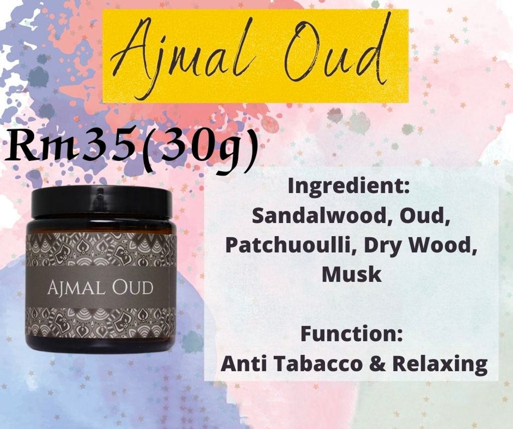 Bagi Ajmal Oud, semstinya oud sahaja kita sudah ketahui aromanya agak padat dan kuat, tetapi Bakhoor Ajmal Oud ini mempunyai keseimbangan rasa dan kekayaan bau tersendiri dengan campuran kandungan Patchoulli, Sandalwood dan Musk. Gabungan ini menerbitkan aroma yang sangat mententeramkan jiwa, mengingatkan kita pada bau ‘earthy’ (seperti bau tanah basah selepas hujan), bau kayu segar di hutan belantara, manis dan musky.